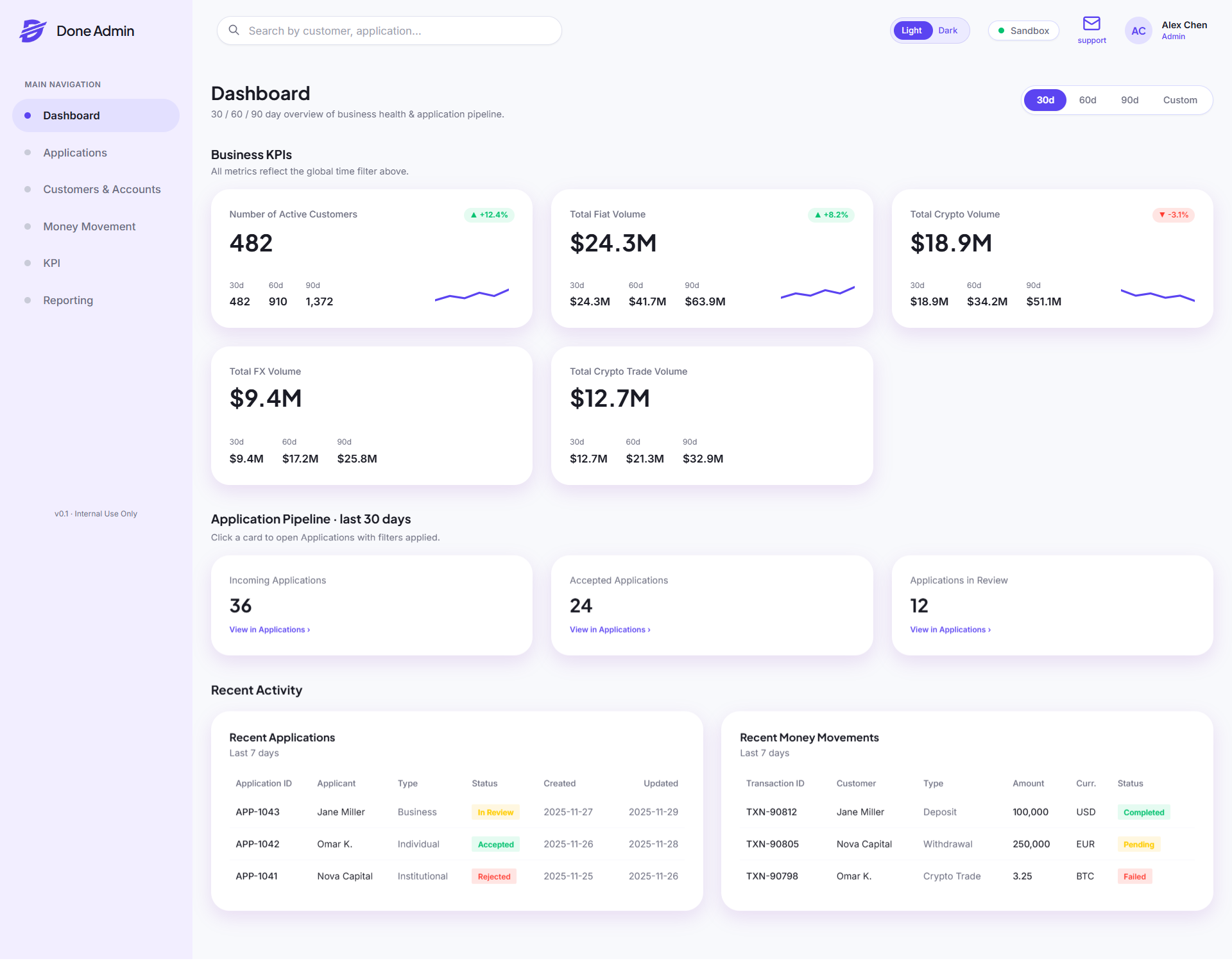 Approved users can access selected DoneOTC portal features in beta upon request, including wallet visibility, transaction history, exchange workflows, and internal operational reporting environments.
